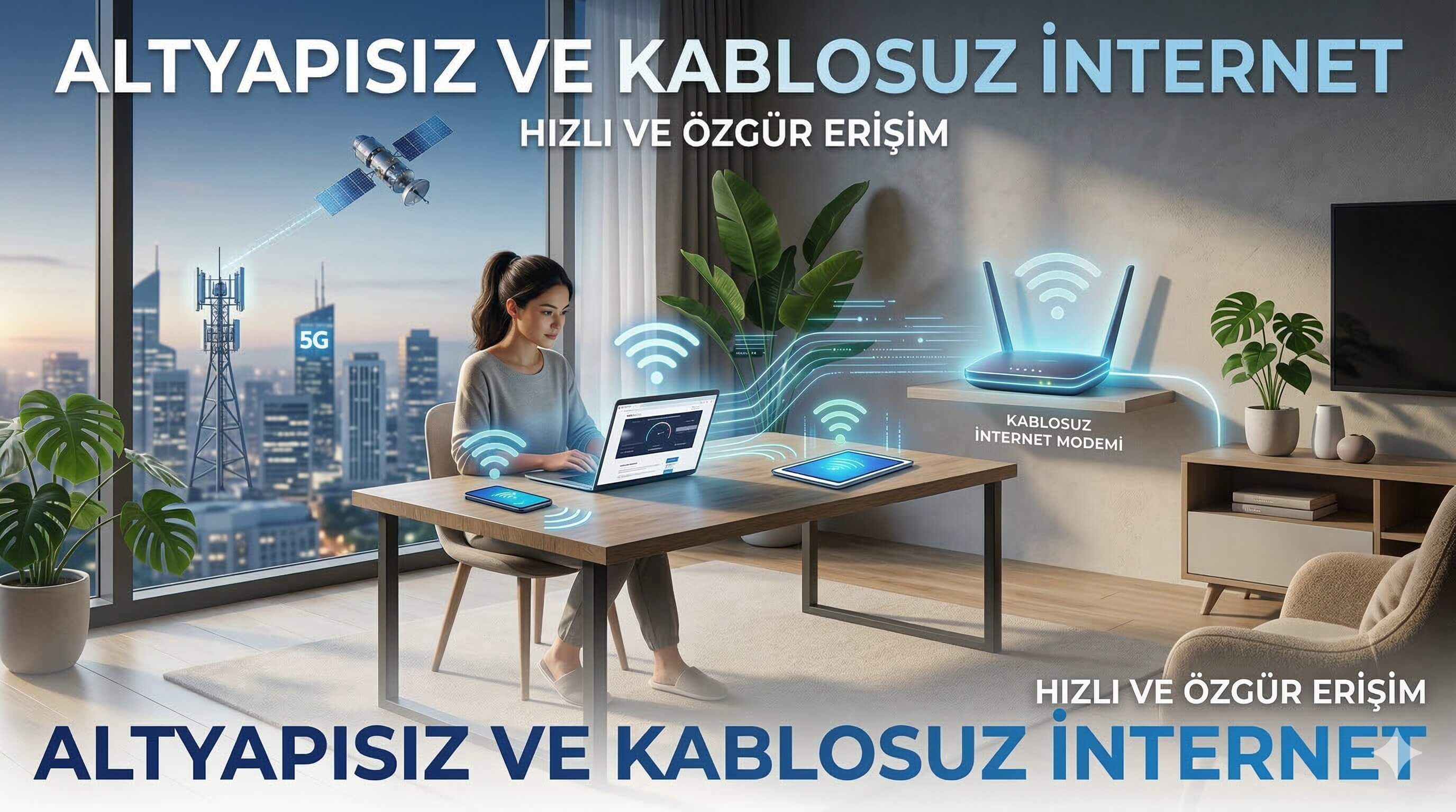 Bulunduğunuz lokasyonda fiziksel bir internet altyapısı (fiber, VDSL, ADSL) bulunmasa dahi, yeni nesil altyapısız internet ve kablosuz internet teknolojilerimizle sizi anında çevrimiçi yapıyoruz. Aylarca port açılmasını beklemek veya bitmek bilmeyen altyapı sorunlarıyla uğraşmak artık geride kaldı.